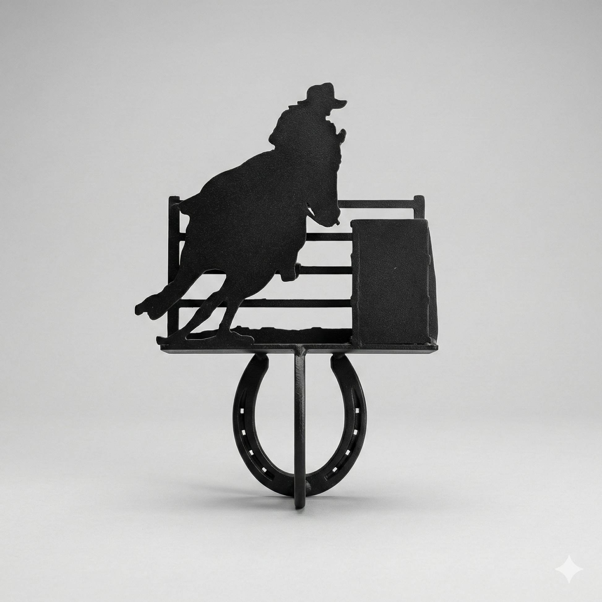Steel single hook coat rack with a horseshoe-style hook.