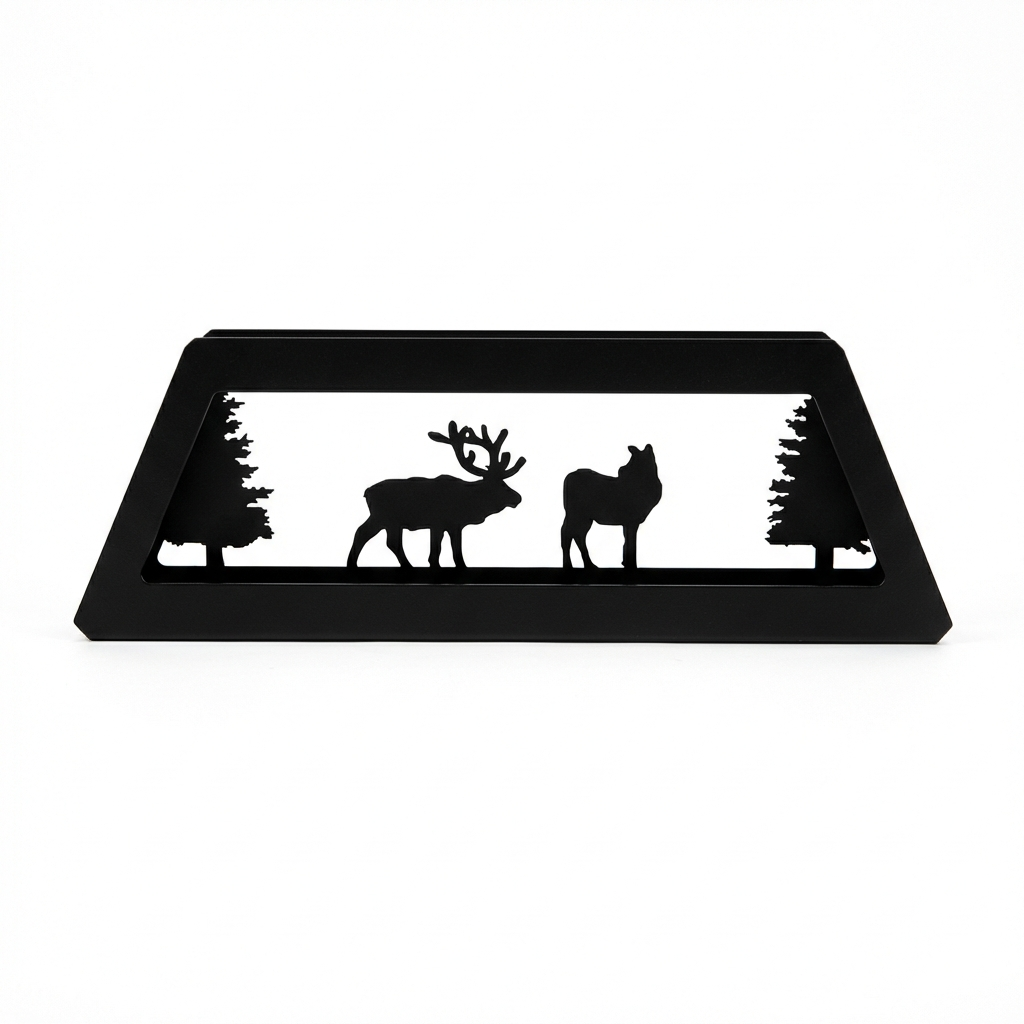 Steel pool table light with two white globes and a selectable scene design.